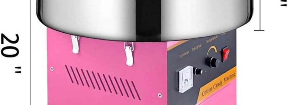 Commercial cotton candy machine, 20.5"x 7" bowl, 20" tall, weighs 29lbs Makes 7 servings per minute 20 servings of cotton candy floss and cones included! Additional floss & cones available for purchase in increments of 60 servings for $25. Mess-free mesh and clips included (washable) Bowl pops off easily for cleaning Instructions: Turn on motor to warm up for 2 minutes, then turn on booster to warm up for 4 minutes, then pour floss into center compartment and you're good to go! As floss develops around the edges, rotate the paper cone around the inside of the bin in a clockwise direction. ______________________________________________________________________________ USE OF OUTSIDE FLOSS PROHIBITED