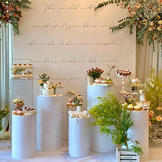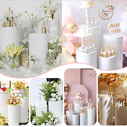Made of high-quality iron, each stand can bear a weight of 66lbs. The surface is polished and high-temperature spray painted for easy cleaning and outdoor use Pillar heights are 35.5", 29.5", 23.5", 21.5" and 20" Perfect as a cake stand, flower stand or for baby showers, weddings, birthdays, anniversaries, family reunions, quinceaneras, corporate events, and more! Each pillar is $15