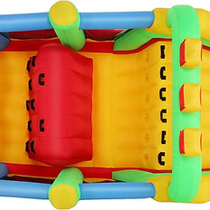 Let the Kids Take Fun to a Whole New Level! This unit has a 300 pound capacity and is for children up to 10 years old. They will enjoy low tunnels, climbing over the high wall, racing to the top and sliding down the huge slide. Measurements: 18ft x 6.6ft x 8ft. Comes with ground pegs, inflating blower, sign of rules, rugs for shoes